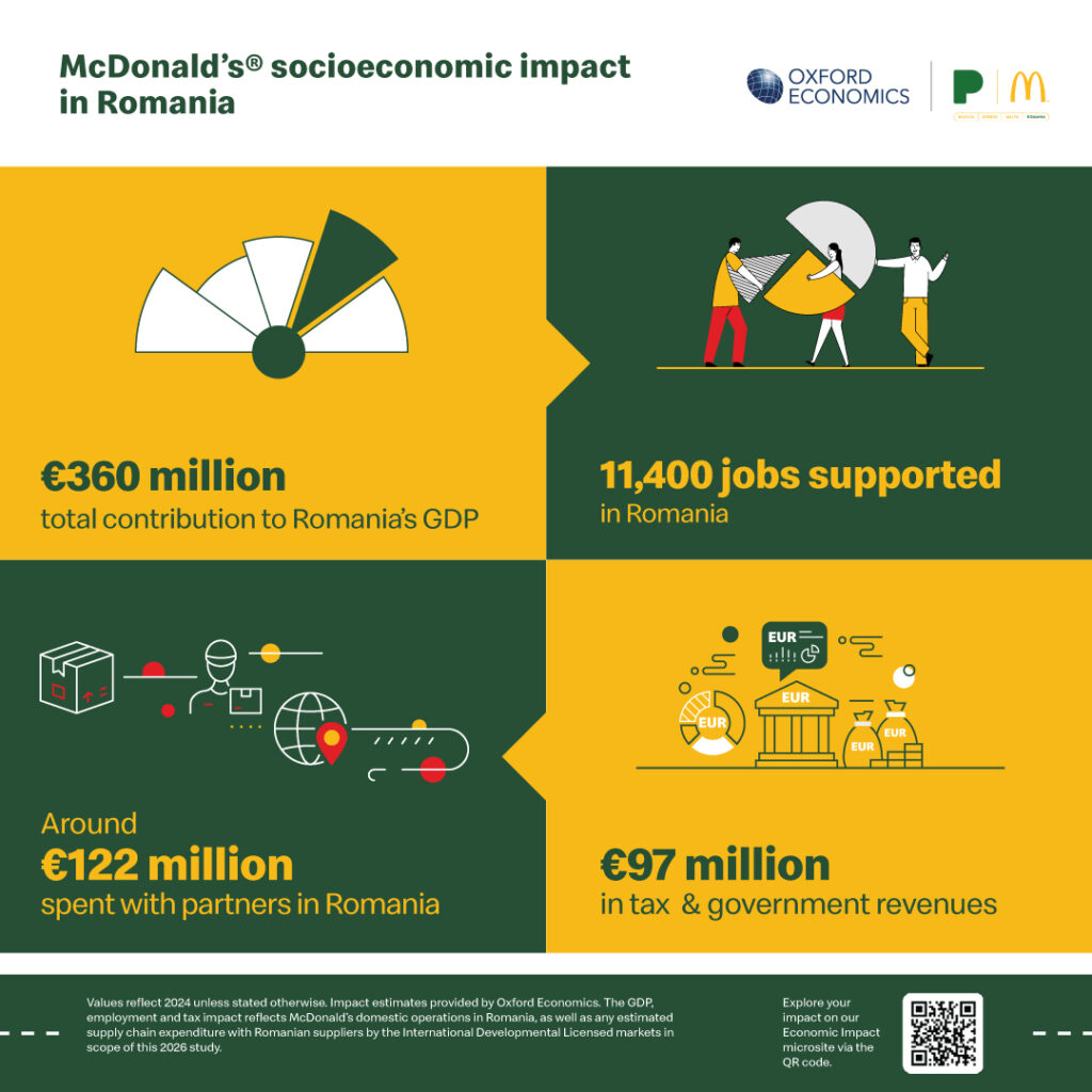 “Meie uuring näitab McDonald’si olulist rolli kohalike kogukondade toetamisel üle Rumeenia töökohtade loomise, arendusinvesteeringute ja koostöö kaudu kohalike tarnijatega,” ütles Stephen Foreman, Oxford Economicsi asedirektor.